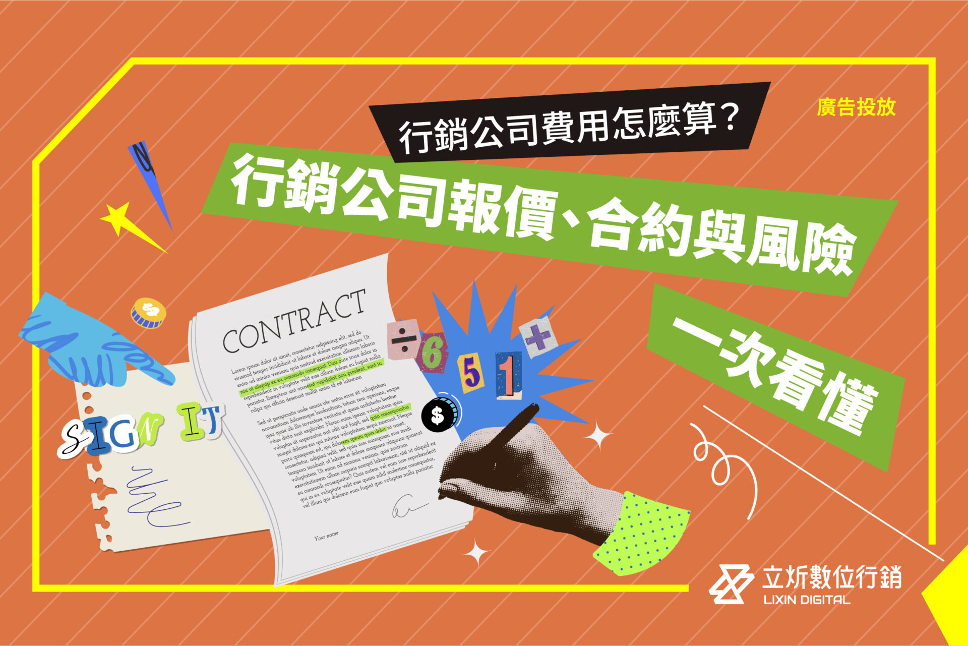 行銷公司費用談妥後,真正保障雙方的是合約內容,許多糾紛產生的原因通常來自於「當初沒說清楚」,留意以下幾點,避開行銷公司風險。